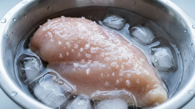 Kycklingbröst i iskallt saltvatten spränger muskelfibrerna för en dubbelt så saftig textur.