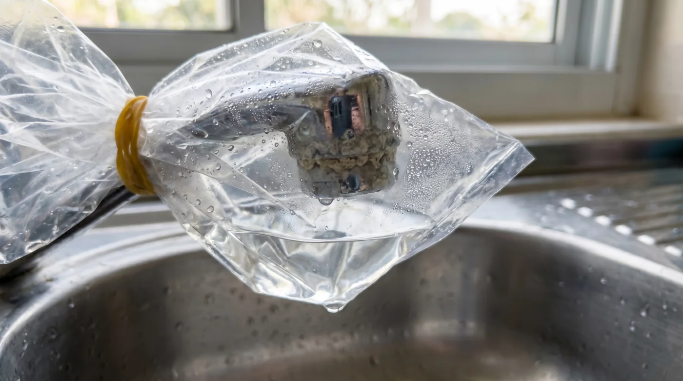 Med vana händer visade han mig hur han isolerade problemet. Han skapade ett lokalt, intensivt syrabad genom att binda en påse runt kranen, en procedur som omedelbart förvandlade den tunga, trettio minuter långa städsessionen till exakt en minuts förberedelse. Det var en lektion i ren, praktisk briljans.