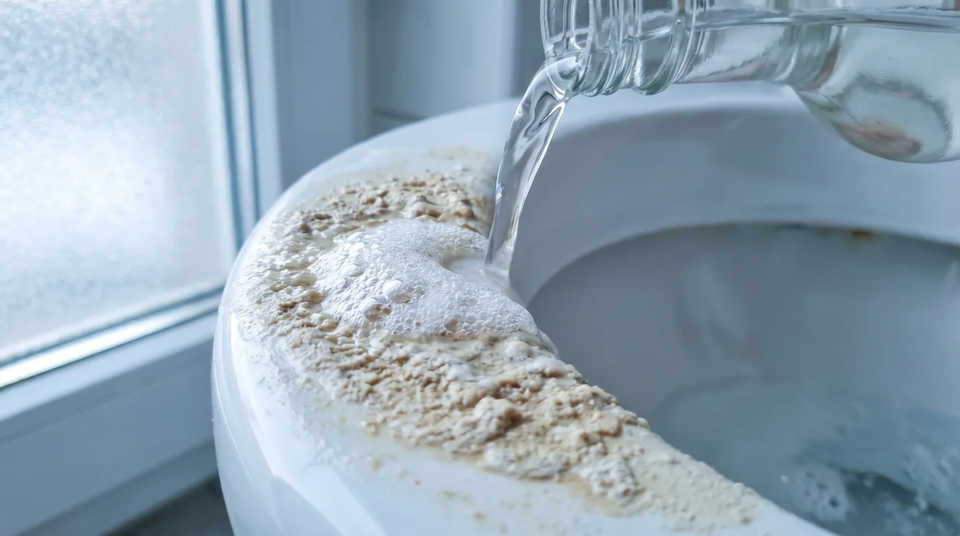 När en toalett har stått orörd i månader, eller om du nyligen flyttat in i en lägenhet med en mörkbrun sorgkant i kröken, krävs en annan strategi. Kombinera tjugofyraprocentig ättika med hett vatten från kranen – upp mot 60 grader, men aldrig kokande, för att skydda toalettstolens integritet. Värmen fungerar som en katalysator som tiodubblar syrans hastighet.