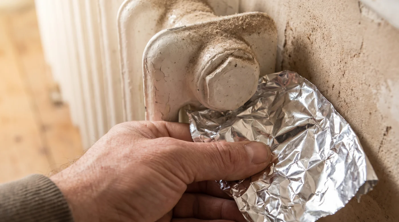 När tiden är en bristvara och du bara vill få bort golvdraget i barnrummet innan läggdags, fungerar vanlig köksfolie alldeles utmärkt. Det är en ren och skär nödlösning som tar två minuter att implementera. Du behöver inte montera ner något alls; du mäter upp en bit, trär den över en platt kartongskiva och skjuter ner den bakom elementet med den spegelblanka sidan utåt mot rummet.