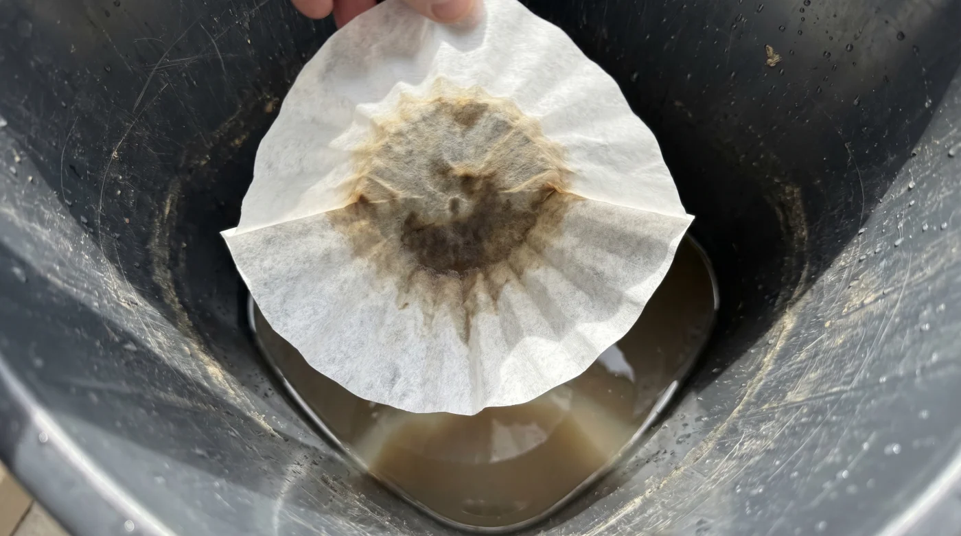 Om du använder ett Bokashi-system eller en sluten kompost på balkongen är fuktbalansen helt avgörande för att undvika ren förruttnelse. Ett enkelt oblekt kaffefilter i botten av hinken reglerar överflödig vätska smidigt, utan att du stör processen.