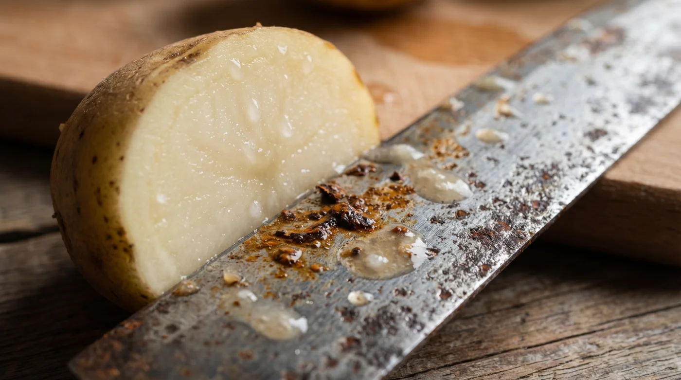 När du låter den fuktiga ytan av en nydelad potatis möta rosten sker en osynlig kemisk reaktion. Det fungerar nästan som att sudda bort de skadliga fläckarna med ett radergummi som av en slump designats specifikt för metall. Oxalsyran bryter långsamt ner den farliga och frätande rosten och förvandlar den till ett mjukt, fuktigt lager som du helt enkelt kan torka av.