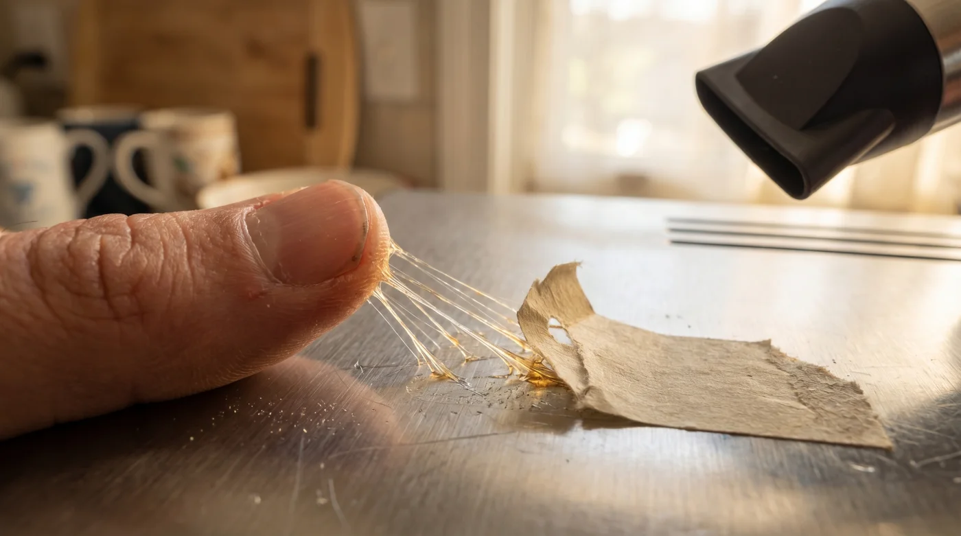 Att övervinna detta handlar inte om kemi eller envishet. Svaret vilar i kontrollerad värme, specifikt den riktade och skonsamma luften från en helt vanlig hårtork som förmodligen redan ligger gömd i ditt badrumsskåp. Det är ett enkelt byte från våld till fysik.