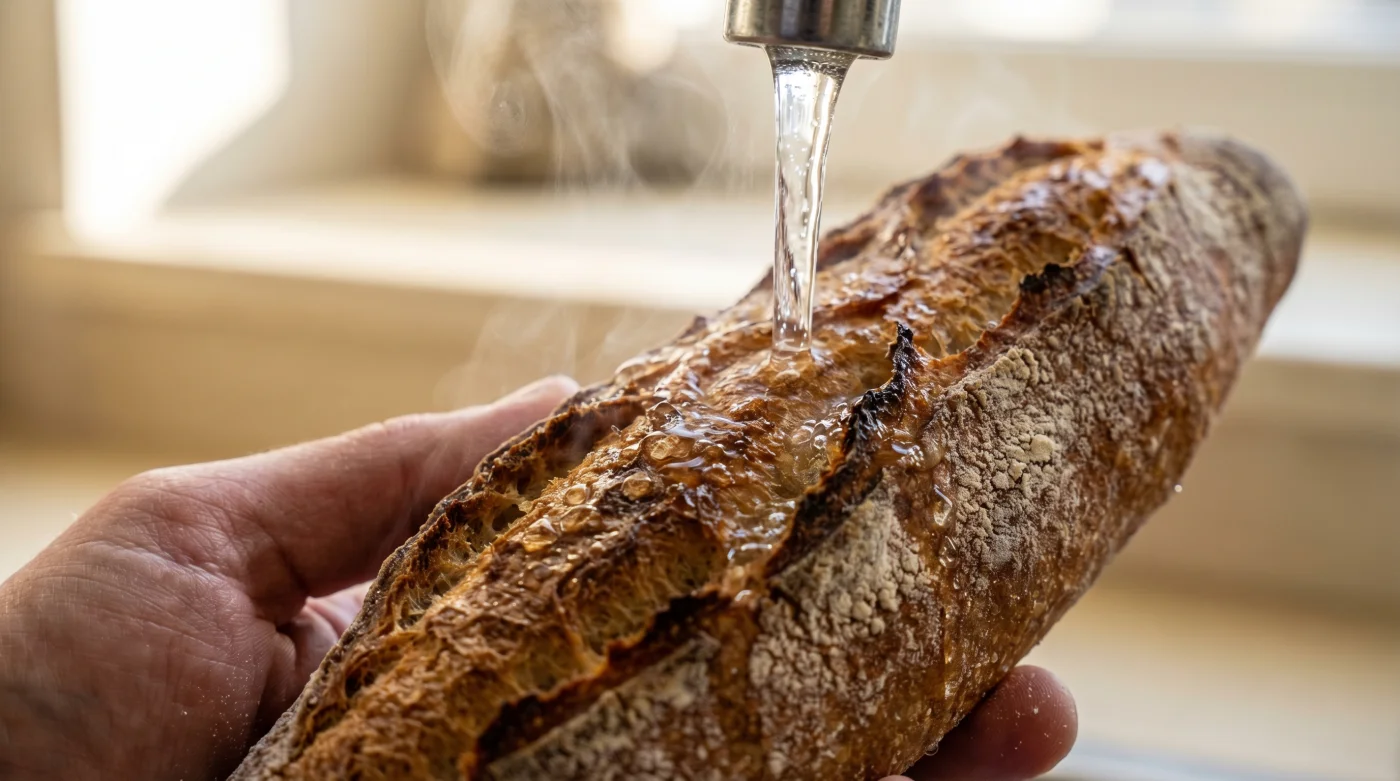 Lösningen ligger varken i mikrovågsugnen, som förvandlar inkråmet till segt gummi, eller i en torr varm ugn som bara gör ytan ännu hårdare. Magin, och en välbevarad Kitchen Secret, ligger i det element du vanligtvis håller långt borta från dina krispiga bakverk: helt vanligt, iskallt kranvatten.