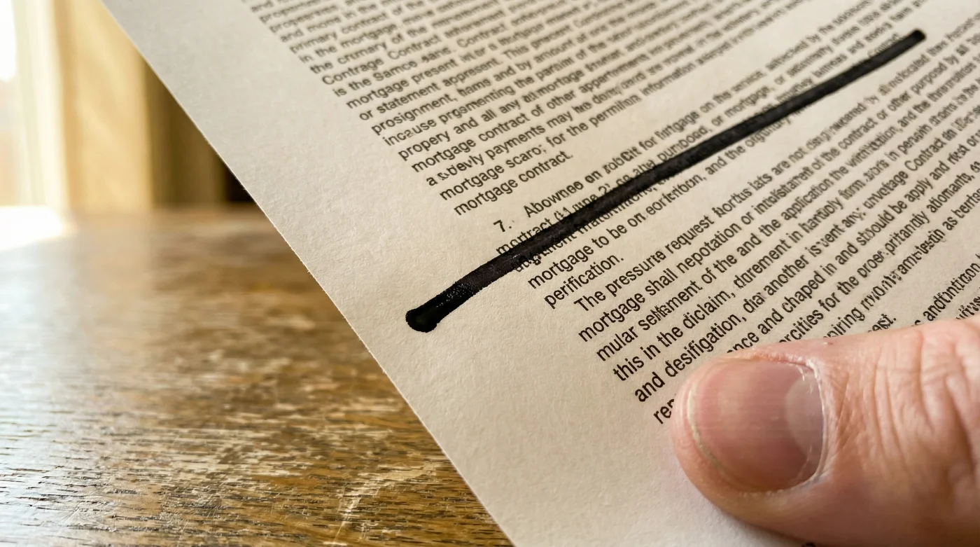Ta din penna och dra ett enda, rakt streck genom den begränsande meningen. Det är en taktil, nästan befriande känsla. Skjut sedan tillbaka papperet över bordet och ställ ett tyst och lugnt krav på att banken ska acceptera dokumentet i sitt nya skick.