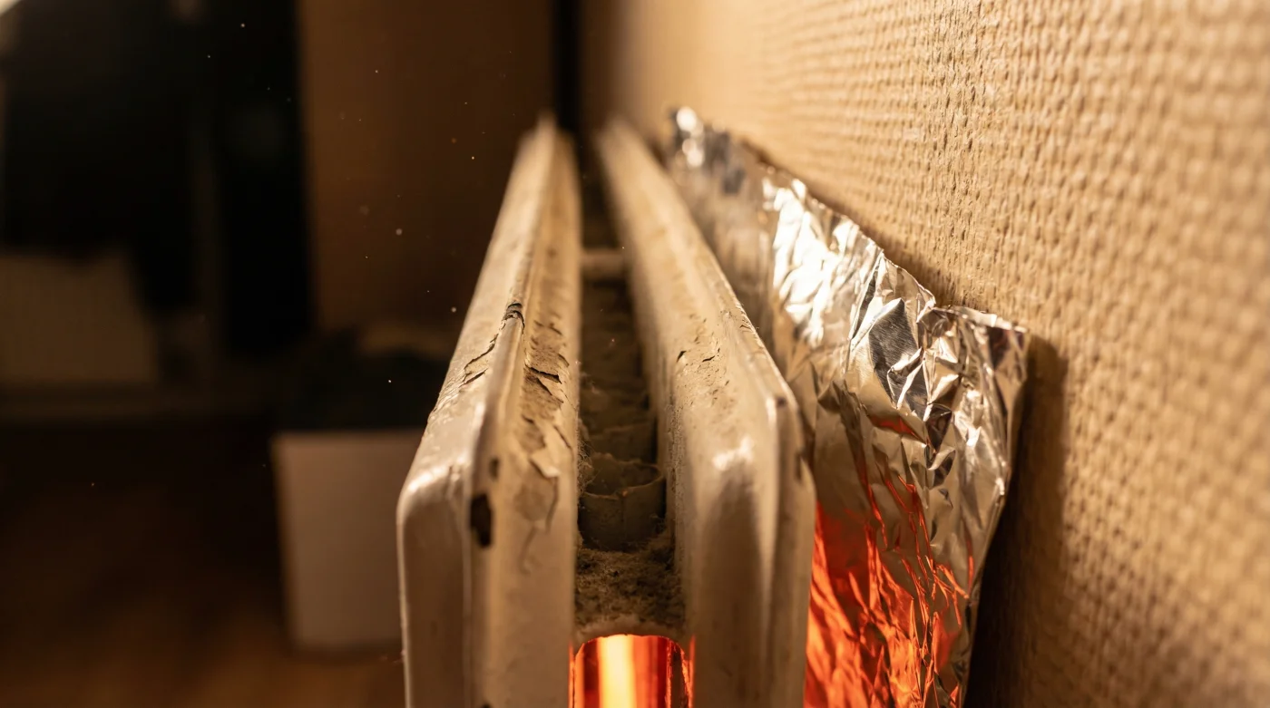 Att bryta detta mönster kräver inga dyra smarta termostater eller komplicerade rördragningar. Ofta är det så att lösningen hittar du i kökslådan. Genom att införa en enkel barriär av aluminiumfolie mellan elementet och ytterväggen, tvingar du omedelbart värmestrålningen att vända om. Du fördubblar plötsligt den riktade effekten ut i rummet, och väggen förblir sval medan ditt golv och din soffa äntligen får den värme de faktiskt förtjänar.