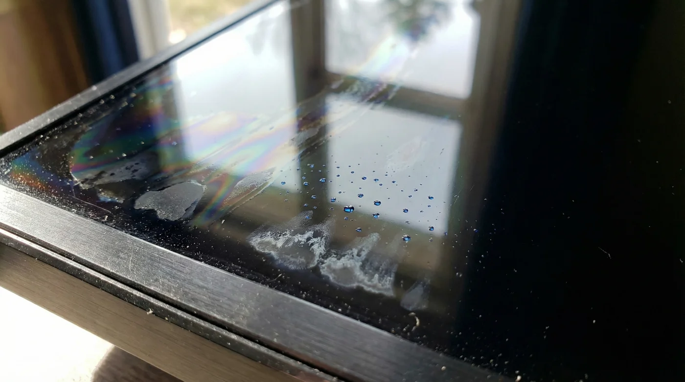 När filtret väl har frätts bort möts du av permanenta ljusfläckar som gör att panelen ser konstant flammig och smutsig ut, särskilt under dagtid eller när en stark lampa är tänd i rummet. Felet är absolut inte att du har städat slarvigt, eller använt en onödigt smutsig trasa. Felet är att produkten från butiken gör exakt vad den är kemiskt designad för, men på en extremt känslig optisk yta som den aldrig borde ha kommit i kontakt med från första början.