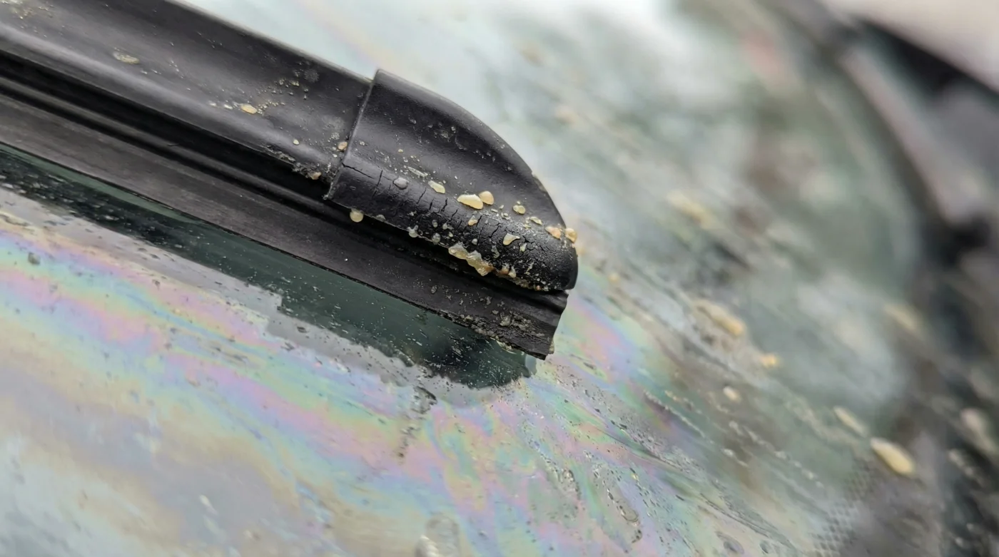 När det heta, flytande vaxet från tvättunneln träffar silikonet, tränger det in och härdar. Torkarbladet tappar direkt sin flexibilitet och förvandlas till en styv vaxspridare som gnuggar in fetthinnan hårdare för varje drag över vindrutan. Den där första premiumtvätten var allt som krävdes för att permanent ändra gummits struktur.