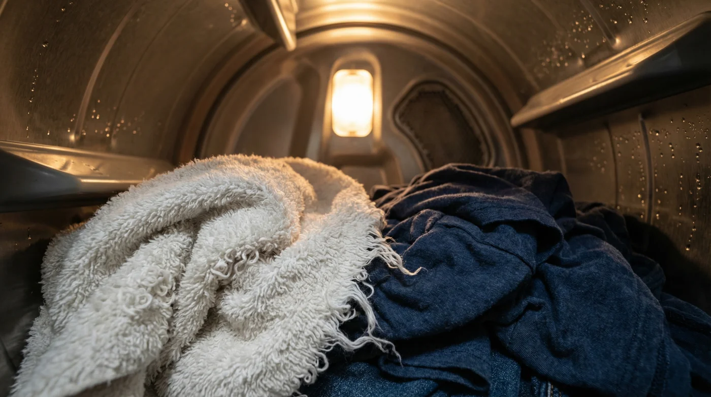 Tänk dig torktumlarens inre som ett stängt, svettigt ekosystem. När dina nytvättade plagg tumlar runt i mörkret, släpper de ifrån sig stora mängder fukt till den omgivande luften. Maskinens primära jobb är att värma upp den luften och sakta ventilera ut fukten ur rummet, men när varje millimeter tyg där inne är precis lika blött, uppstår en fysisk tröghet. Luften mättas snabbt, trumman fylls av ånga och kläderna börjar i praktiken koka i sin egen fukt snarare än att torka.