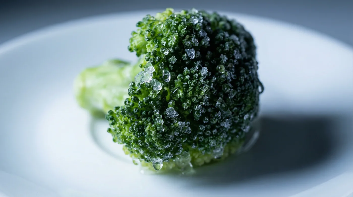Problemet med fryst broccoli är att den blancheras, alltså snabbkokas, innan den fryses ned för att hålla färgen. Denna process skadar myrosinaset. Om du tar dessa iskalla, försvagade buketter och ger dem en chock i mikron, dör de sista resterna av enzymet omedelbart. Du förstör den sista gnistan av potential. Mikrovågorna är för aggressiva. De sliter sönder den känsliga cellstrukturen inifrån.