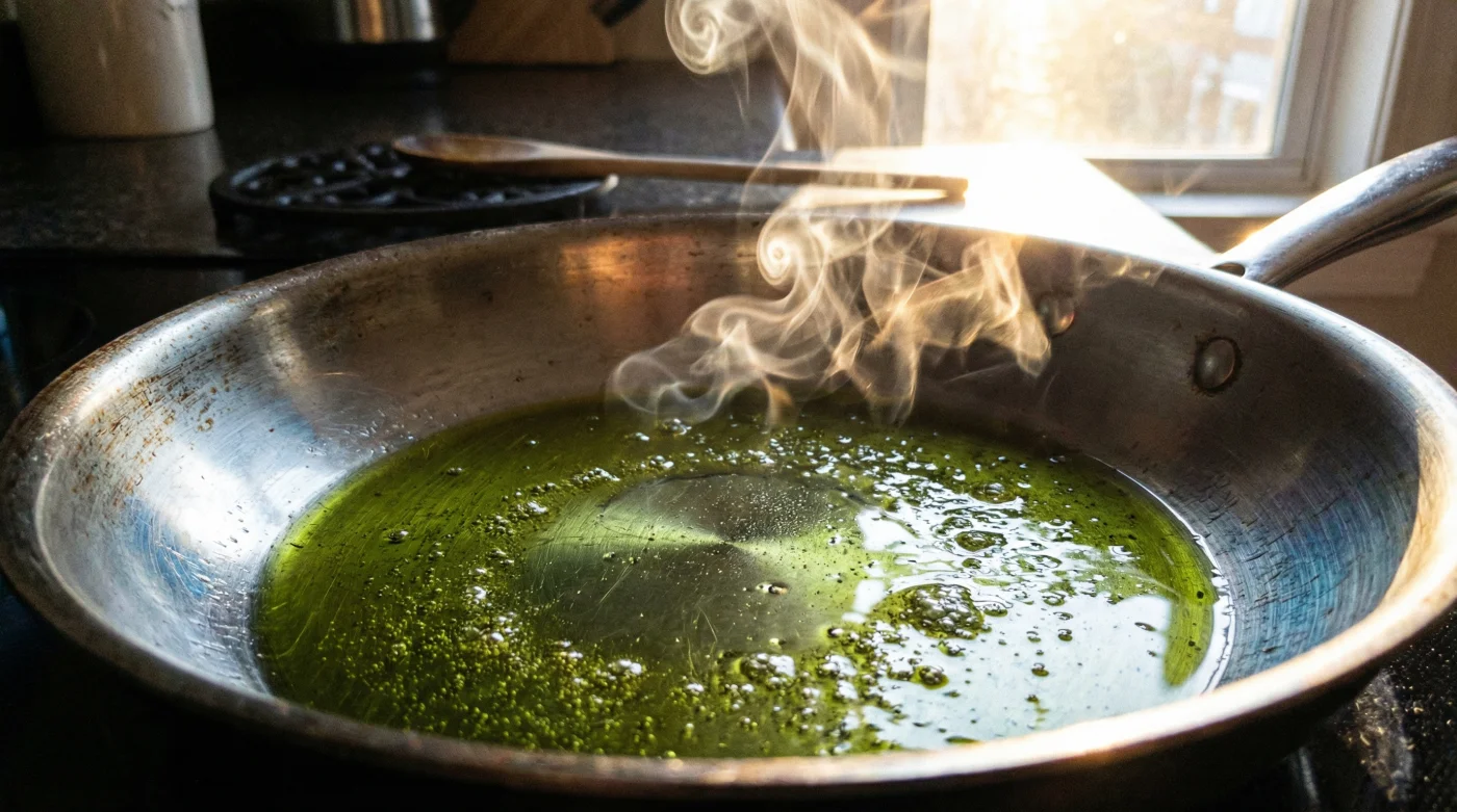 Det fräser till. Du står där vid spisen, stekpannan är het och du häller i en generös skvätt av den där dyra, grumliga extrajungfruolivoljan du köpte i en delikatessbutik. Doften av nyslaget gräs och peppar stiger för en sekund. Sedan händer det. En skarp, stickande doft sprider sig, en blåaktig rök stiger mot fläkten och plötsligt svider det i ögonen. Det som skulle bli en perfekt, hälsosam yta på kvällens middag har just förvandlats till en kemisk olycksplats.