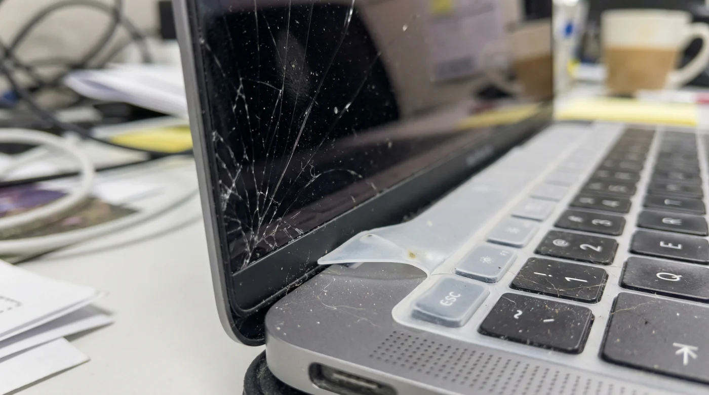 Men så kommer morgonen då du fäller upp locket. Skärmen förblir svart, eller ännu värre, den lyser upp i ett kaotiskt mönster av regnbågsfärgade streck och svarta bläckliknande fläckar. Där, i mitten av glaset, syns ett svagt spindelnät av sprickor. Du har inte tappat datorn. Du har inte slagit till den. Du har bara stängt den precis som vanligt.