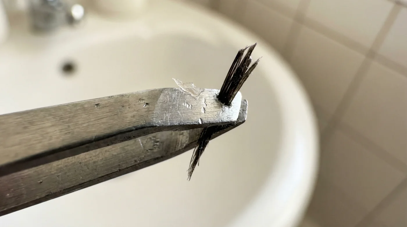 Det är morgon. Du lutar dig in över handfatet tills näsan nästan nuddar badrumsspegeln. Det kalla, grå ljuset från fönstret avslöjar det där enda, envisa strået som plötsligt dykt upp under natten. Du sträcker dig efter pincetten, öppnar käftarna och ställer in siktet.