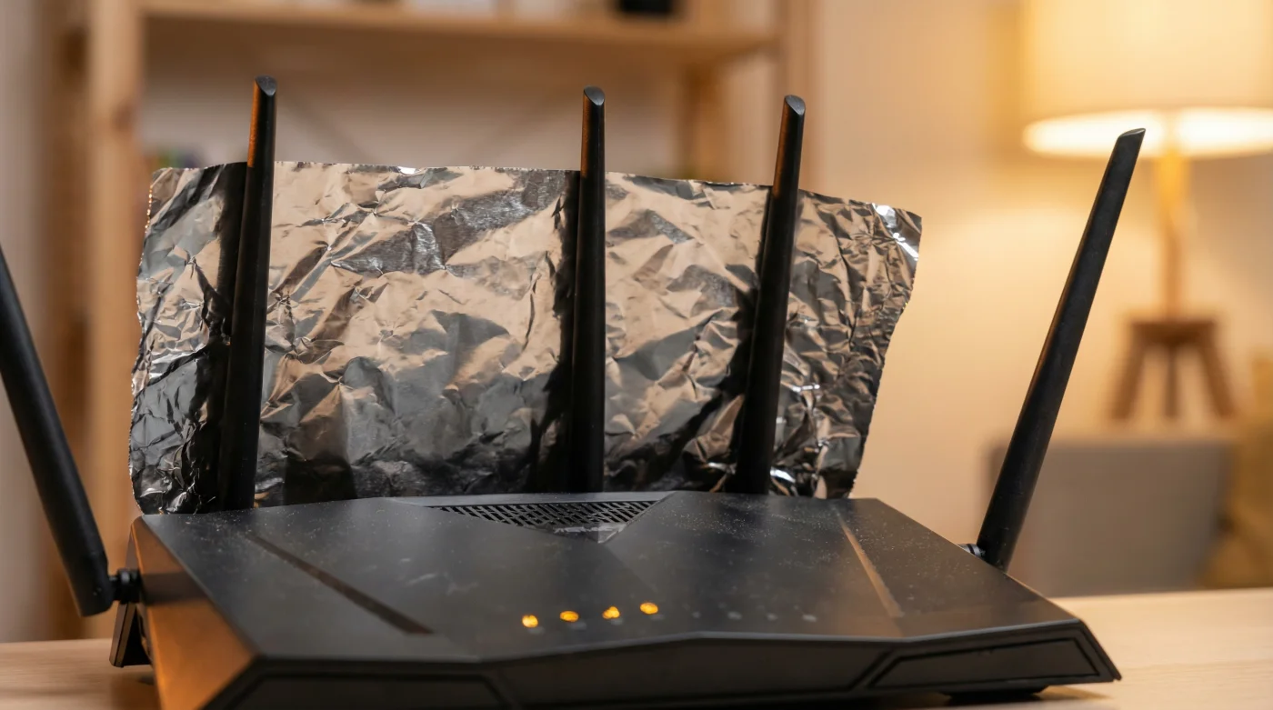 För stenvillan: Om du bor i ett äldre hus med tunga hjärtväggar av massivt tegel absorberas signalen nästan omedelbart. Här behöver du en bred, mjuk båge av folie placerad tätt bakom din router. Målet är att trycka hela signalens bredd mjukt framåt, som en bred penseldragning rakt genom hallen. Detta förhindrar att radiovågorna sipprar ut genom fasaden.