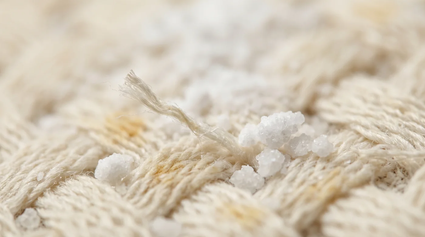 När du sprider ett jämnt, tunt snötäcke av detta kritvita pulver över ytan, aktiverar du omedelbart en mikroskopisk utrensning. Det alkaliska pulvret suger tålmodigt åt sig fukten likt en uttorkad svamp och neutraliserar omedelbart de syror som bär på den dåliga lukten. För de osynliga småkrypen blir deras tidigare tropiska miljö plötsligt en karg, obeboelig saltöken.
